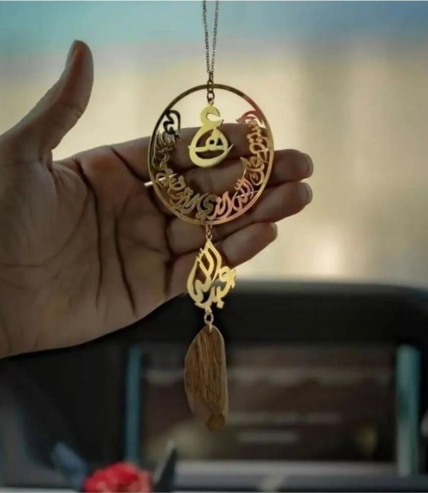 تعليقة حروفكم والاسم مدموجه بحب تفاصيل المنتج.نكتب الأسماء والحروف والرموز حسب طلبكمطلي ذهب و مطلي فضة.متوفر بلونين ذهبي او فضيتزيين السياره وتطيبها